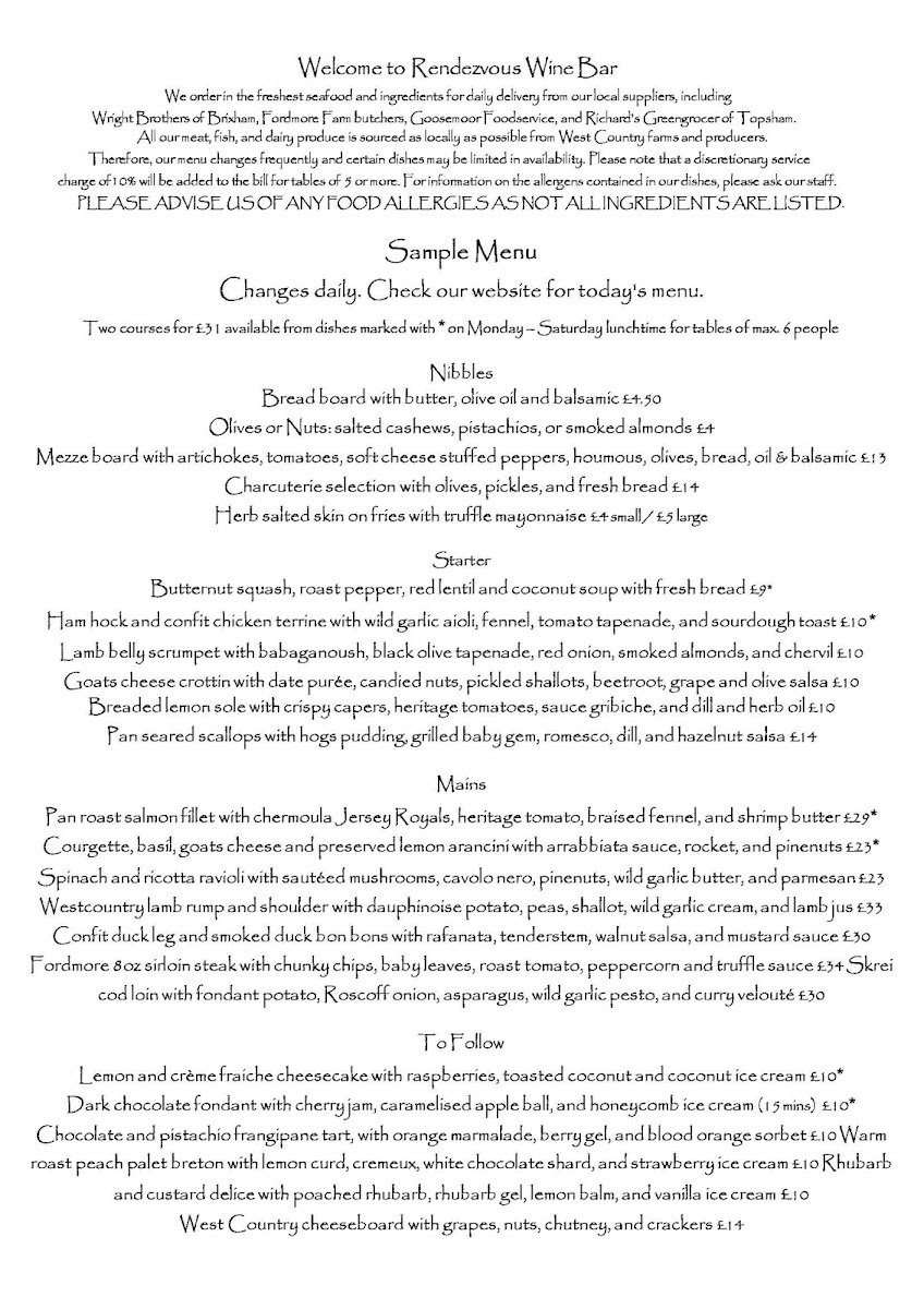 Welcome to Rendezvous Wine Bar, an inviting gem nestled in Exeter, where culinary excellence meets a curated selection of fine wines. The menu is a delightful journey through flavor, beginning with starters that include Butternut Squash and Roast Pepper Soup and a Ham Hock and Confit Chicken Terrine, each dish radiating warmth and creativity.